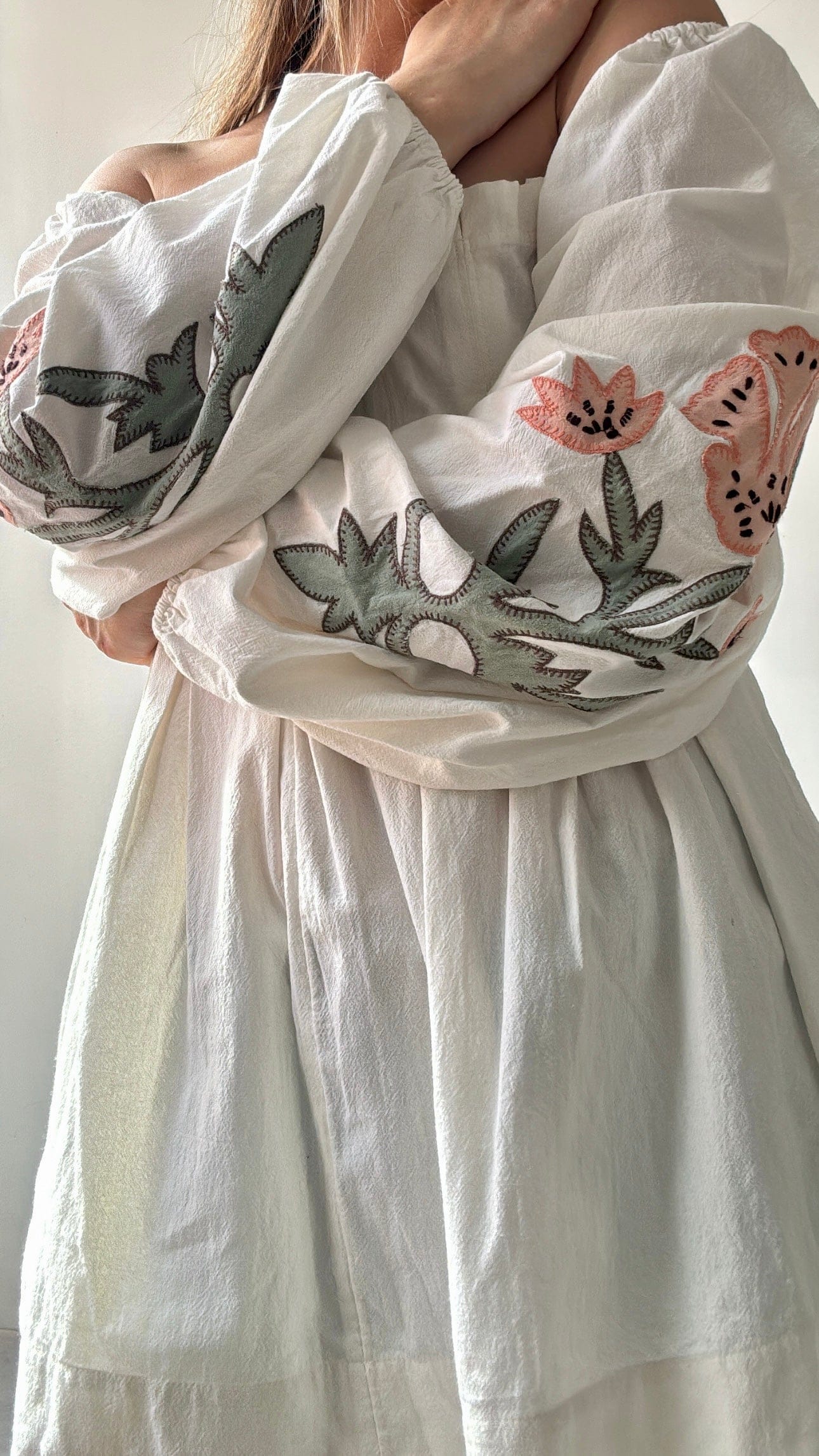 Made from 100% strong cotton, this gorgeous Free People blouse is a dazzler with a shirred elastic panel on the tied back, elastic shoulders, wide pleats at the front and best of all stunning appliqué detailing on the balloon sleeves. Only one in stock. Model Elly is 1.74cm and is a size NZ 8/10 wearing the medium.