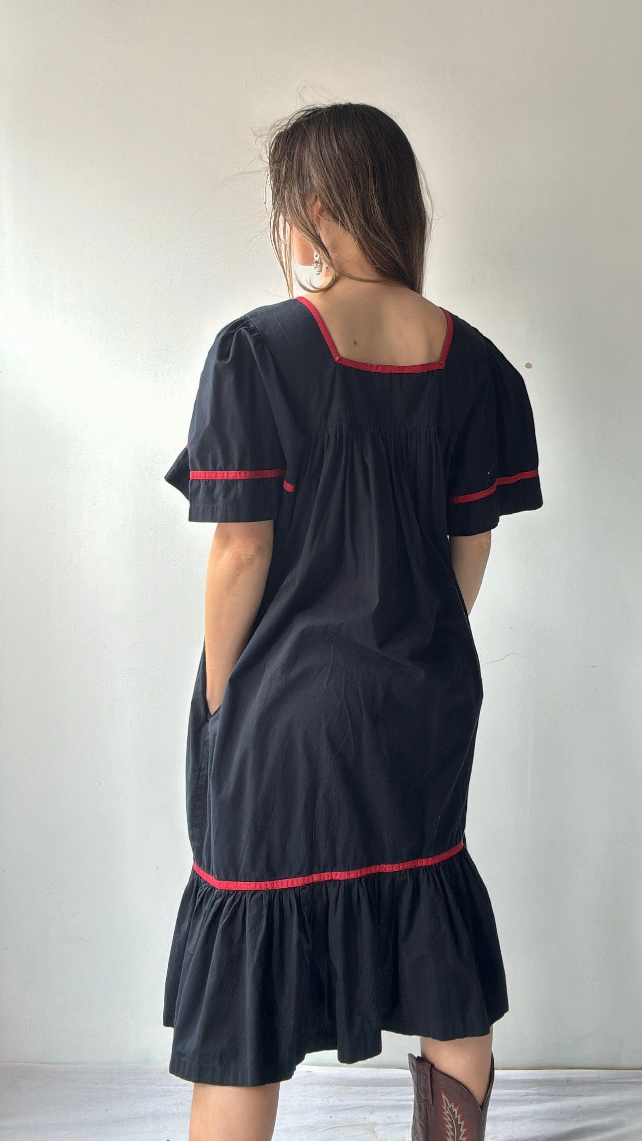 Authentic Vintage 1970’s colourfully appliquéd Mexican midi tunic dress in a rustic cotton.. Elly is 1.74cm and a size NZ 8/10. This would fit up to a medium. It’s so beautiful.