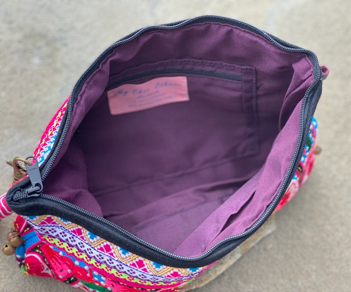 Handmade Tribal Hmong clutches, using traditional embroidery techniques of the minority Miao people, these beautiful clutches symbolize their unique cultural art form. Each is lined in aubergine and is adorned with handmade tassel and little brass bells. 28 x 18cm