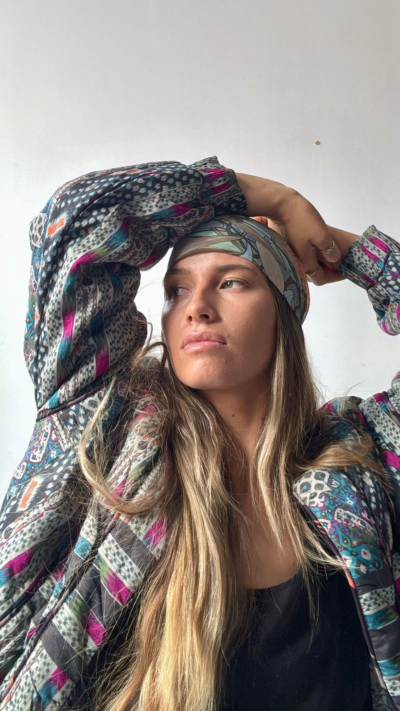 Quilted jacket from French label Promod. Beautifully soft 100% cotton in a stunning print with fab contrasting lining. Piping along seams and hems adds gorgeous detail. Has front pockets. Elly is 1.74cm and wearing the small, NZ size 10